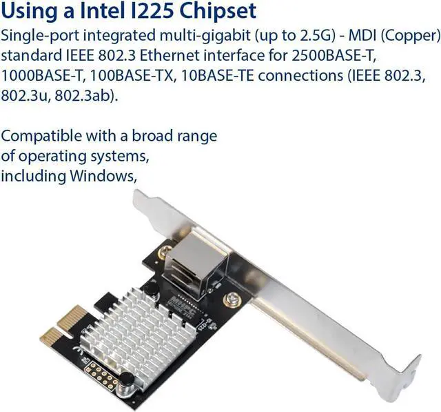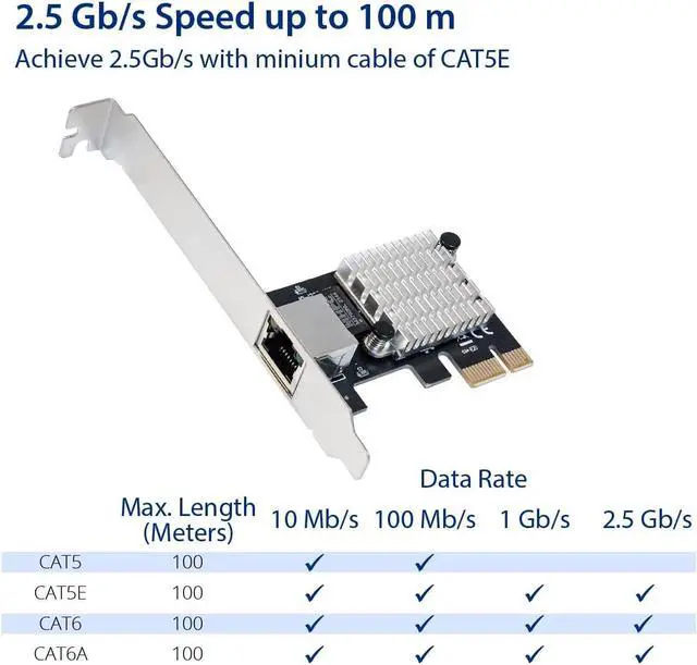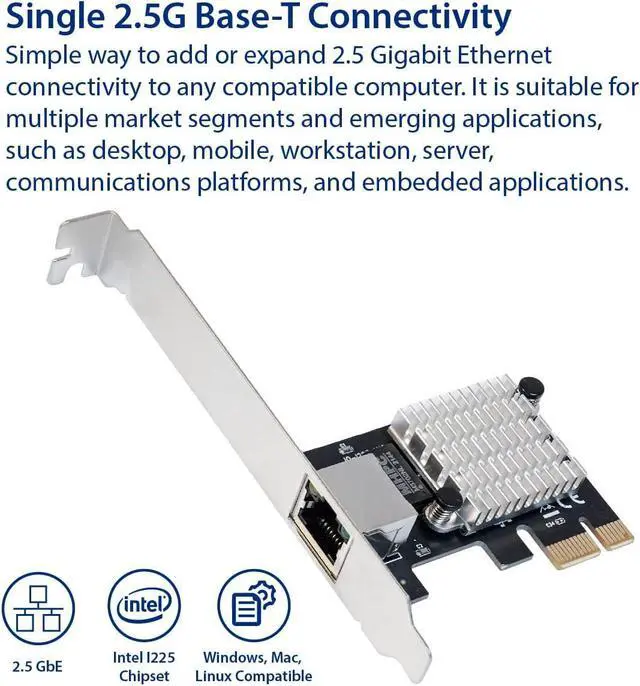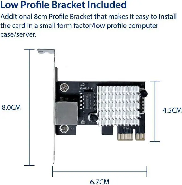 What You Get: IO Crest 2.5 Gigabit PCI-E Network Card x1, Driver Disk x1, 8cm Low-profile Bracket x1. Backed by Syba 3 Year Hassle-free Warranty and Lifetime Customer Service. Important Note: Only work with PCI-E slot, Not for PCI Slot.