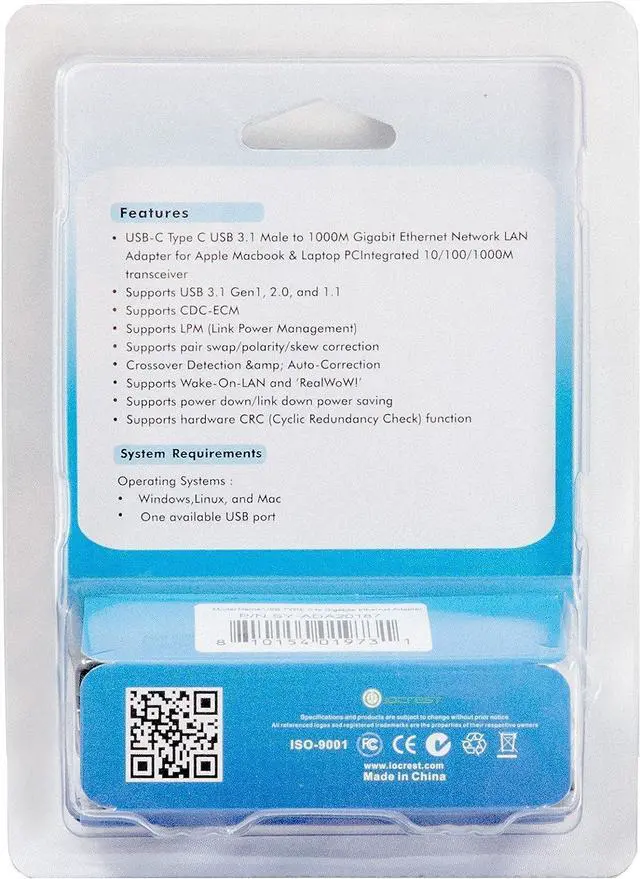 IO Crest USB 3.1 Gigabit Ethernet LAN Adapter - SY-ADA20187