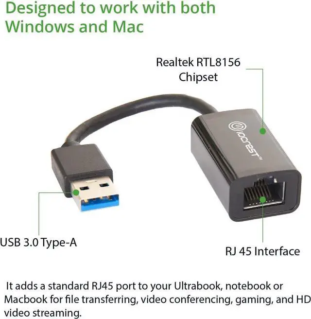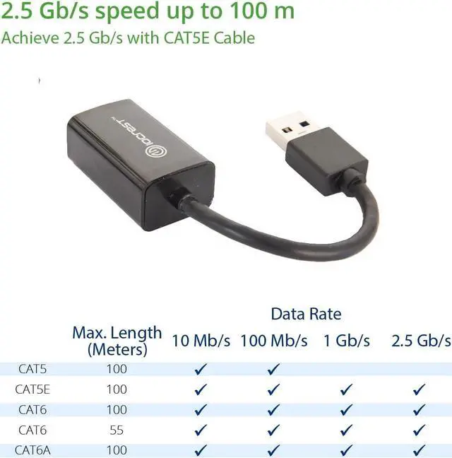 Super Speed USB 3.0 Male A to 2.5G RJ45 Female Ethernet adapter connects your computer, Raspberry Pi 3 or tablet to a router, modem or network switch for network connection. It adds a standard RJ45 port to your Ultrabook, notebook or Macbook for file transferring, video conferencing, gaming, and HD video streaming.