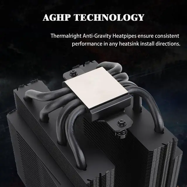 AGHP technique4x8mm heat pipes apply AGHP technique, Solve the Inverse gravity effect caused by vertical / horizontal orientation, cpu cooler TDP 255W. Up to 20000 hours of industrial service life, S-FDB bearings ensure long service life of air-cooler radiators. UL class a safety insulation low-grade, industrial strength PBT+PC material to create high-quality products for you. The height is 160mm, It is recommended that the chassis width be greater than 210mm.
