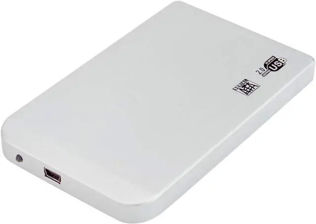 2.5 inch Hard Disk Drive SATA to Mini USB 2.0 Enclosure Tool Free Aluminum Alloy HDD Case Portable External SSD Box Support 2TB (White)