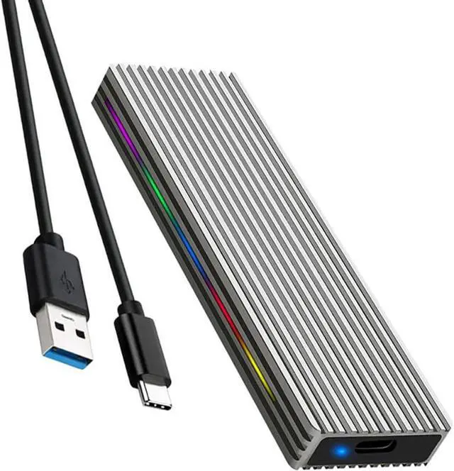 M.2 M Key SSD Enclosure 10Gbps/5Gbps USB3.1 NGFF/NVME Protocol USB-C Mobile Case Aluminum Alloy with RGB Light (NGFF C to A,Silver)