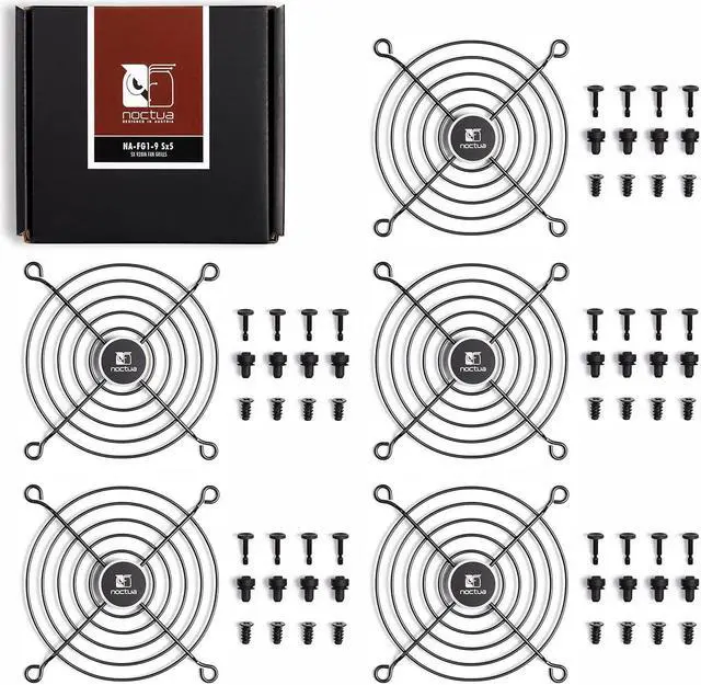 Premium-grade matte-black fan guards for 9cm fans, including screws and tool-free push-pin mounting system
