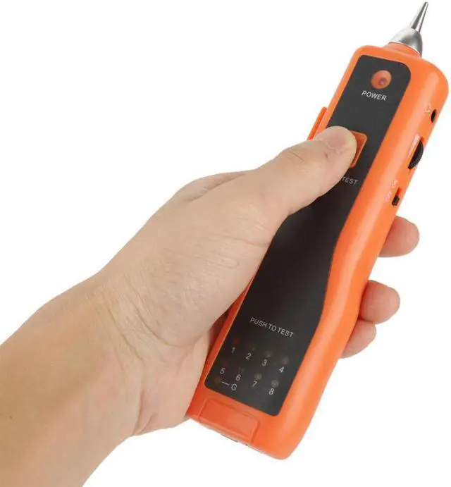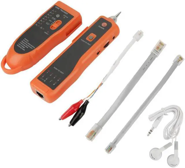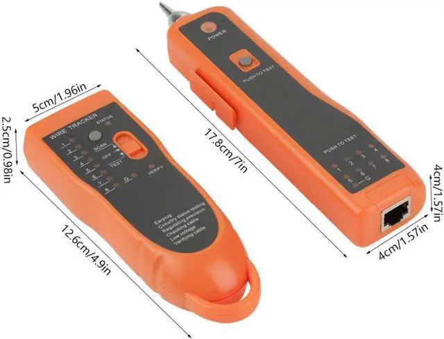 Specifications:Model: XQ-350Color: OrangeMax working current: Tester: 10mA Receiver: 30mASignal transfer mode: Multi-frequency pulseSignal output level: 8Vp-pSignal transfer distance: 3KmBattery: 1 x DC 9V Battery (NOT included)Size: Transmitter: Approx. 126*50*34mm/4.9*1.96*1.3in Receiver: Approx. 178*40*25mm/7*1.57*0.98inWeight: Approx. 326g Features: This cable tester is suitable for RJ11 RJ45, judge continuity of the cables or wires. Rapidly find the target wire from among plenty of network, telephone wires. Compare the volume of the "tout" sound and the brightness of the signal indicator, then you can find the target wire which has the highest volume and brightest indicator. It comes with an earphone support to enable service technician to work conveniently and comfortably in noisy environment. Sensitive sensor, stable and reliable.