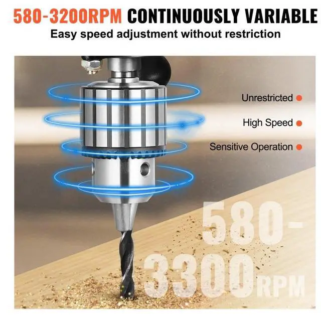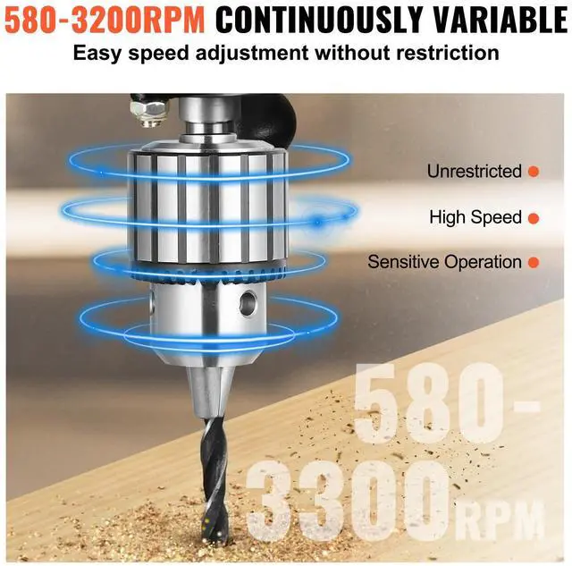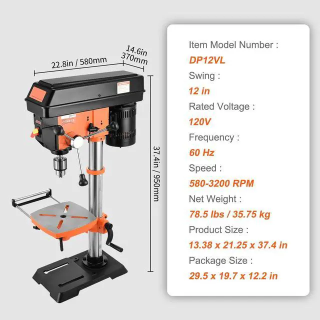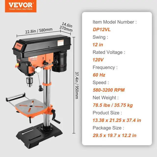 VEVOR 12 in Benchtop Drill Press, 5 Amp 120V, Variable Speed Cast Iron Bench Drill Press, 12 in Swing Distance 0-45° Tiltling Worktable with Laser Work Light, Tabletop Drilling Machine for Wood Metal, High Drilling Accuracy, Continuously Variable, Superior Cooling System, Humanized Design, Sufficient Power, Wide