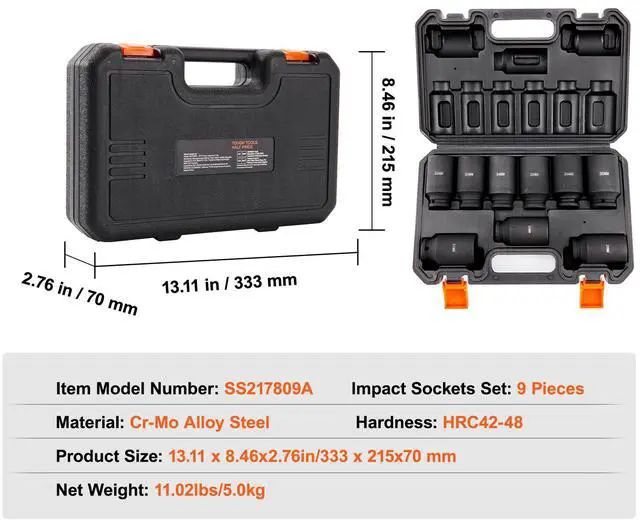 , Withstand High Torque, Distinct Size Markings, Heavy-Duty Carrying Case, Black Phosphating Treatment, Impact
