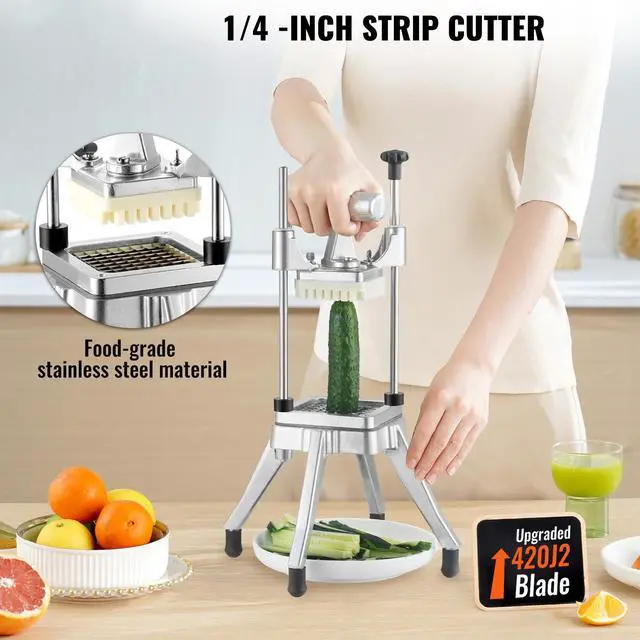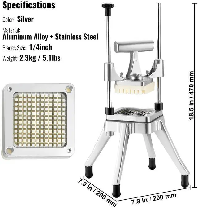VEVOR Commercial Vegetable Fruit Chopper 1/4" Blade Heavy Duty Professional Food Dicer Kattex French Fry Cutter Onion Slicer Stainless Steel for Tomato Peppers Potato Mushroom, Heavy-Duty Structure, Stainless Steel Blade, Labor-Saving Handle, Non-Slip Feet, Hassle-Free Cleaning, Multi-functional Cutter, Blades