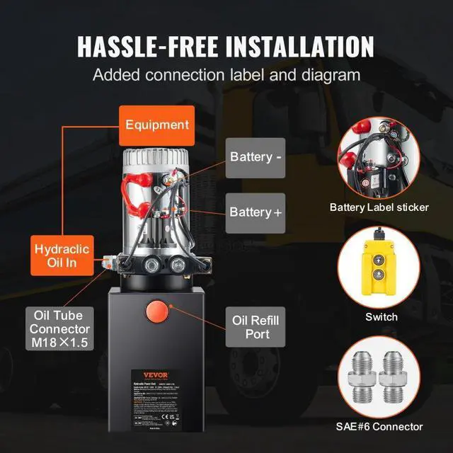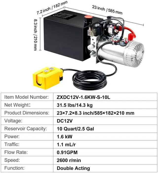 VEVOR Hydraulic Pump, 10 Quart Hydraulic Power Unit, Double Acting Dump Trailer Pump, 0.91 GPM Flow Rate, 3200 PSI Max Relief Pressure, DC 12V Hydraulic Pump for Dump Trailer Car Lifting, Heavy Machinery Made Easy, Double the Efficiency, Safety First, Professional-Grade Performance, Simplified Setup, Effortless Flow Control,