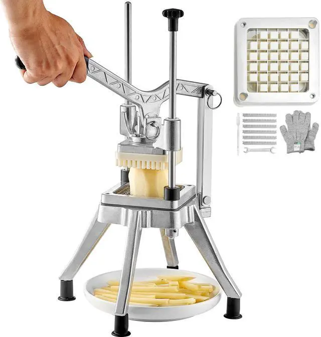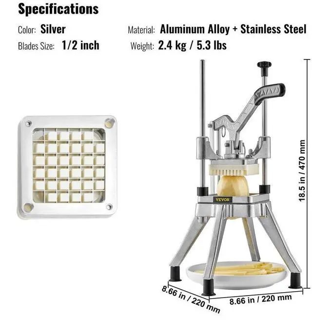VEVOR Commercial Vegetable Fruit Chopper 1/2 Blade Heavy Duty Professional Food Dicer Kattex French Fry Cutter Onion Slicer Stainless Steel for Tomato Peppers Potato Mushroom, Sliver, Heavy-Duty Structure, Stainless Steel Blade, Labor-Saving Handle, Non-Slip Feet, Hassle-Free Cleaning, Multi-functional Cutter, Blades