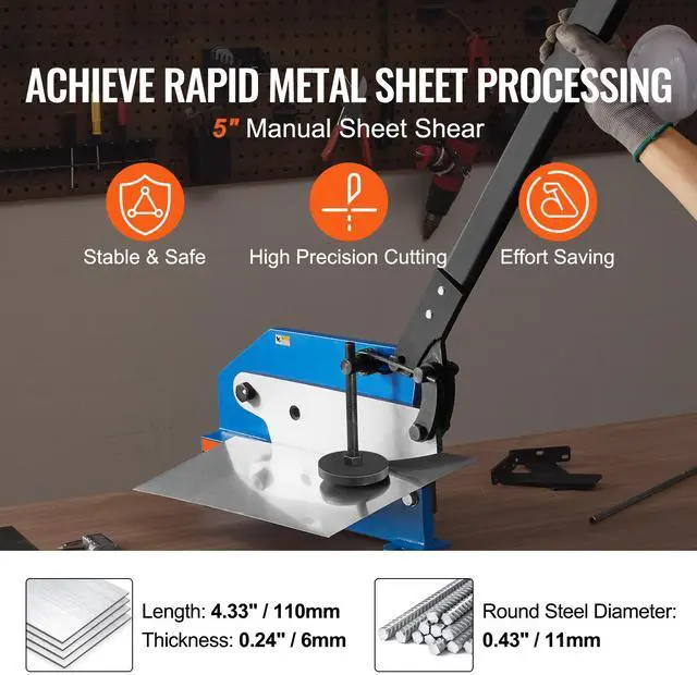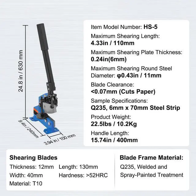 VEVOR 5" Manual Hand Plate Shear for Metal Sheet Processing, HS-5 Benchtop Cutter with Q235 Material, for Crafts Thick Steel Crafting, Heavy Duty Roll Press Machine for Builders, DIY Enthusiasts, Maximum Cutting Dimensions, High-strength blades, Effort-Saving Structure, Long-term Use Without Fatigue, Widely Applicable, Bottom with mounting holes, Primary