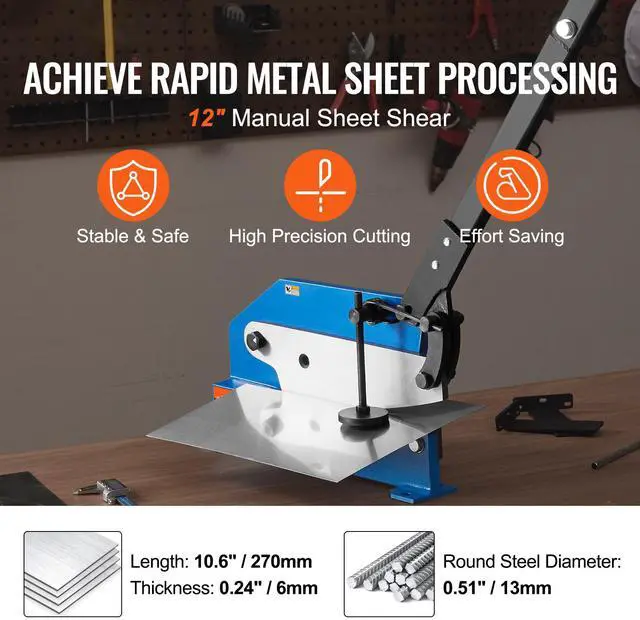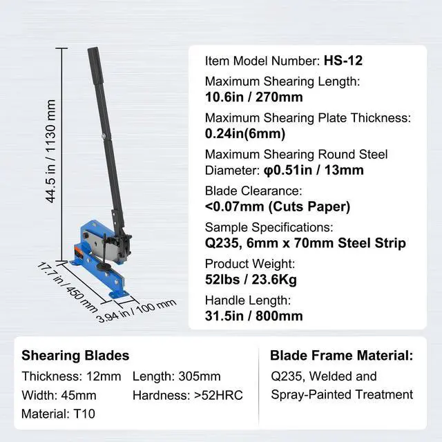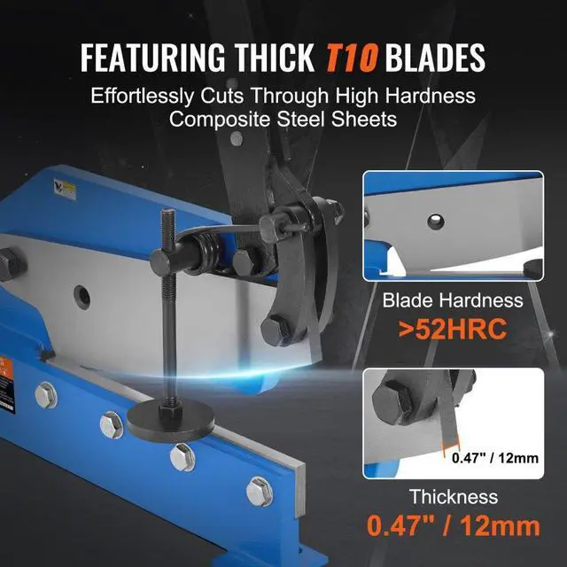 VEVOR 12" Manual Hand Plate Shear for Metal Sheet Processing, HS-12 Benchtop Cutter with Q235 Material, for Crafts Thick Steel Crafting, Heavy Duty Roll Press Machine for Builders, DIY Enthusiasts, Maximum Cutting Dimensions, High-strength blades, Effort-Saving Structure, Long-term Use Without Fatigue, Widely Applicable, Bottom with mounting holes, Primary