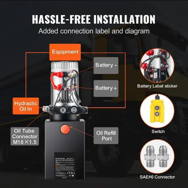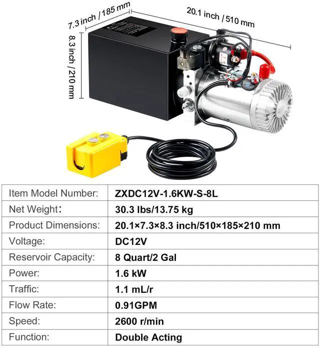 VEVOR Hydraulic Pump, 8 Quart Hydraulic Power Unit, Double Acting Dump Trailer Pump, 0.91 GPM Flow Rate, 3200 PSI Max Relief Pressure, DC 12V Hydraulic Pump for Dump Trailer Car Lifting, Heavy Machinery Made Easy, Double the Efficiency, Safety First, Professional-Grade Performance, Simplified Setup, Effortless Flow Control,