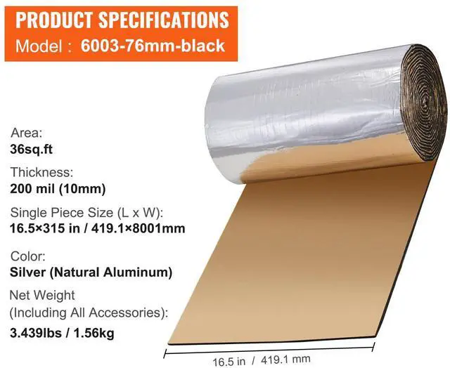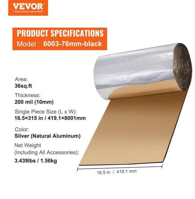 VEVOR Car Sound Deadening Mat, 200 mil 36 sqft Automotive Sound Deadener, High Density Foam Sound Deadener Material & Heat Barrier, Double Layer Waterproof Structure Acoustic Insulation Mat, Year-Round Versatility, Strong Adhesive Backing, Meets the Needs of the Entire Vehicle, Refreshing Driving Conditions, Diamond-Shaped Aluminum Foil, Wide Range of