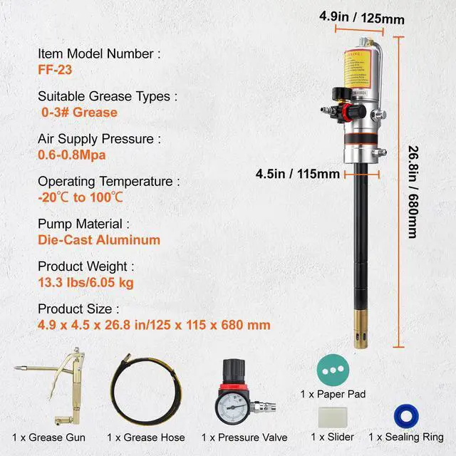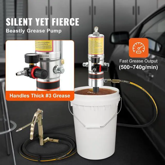 VEVOR Grease Pump, 50:1 Pressure Ratio Air Operated Grease Pump with 13 ft High Pressure Hose and Grease Gun, Pneumatic Grease Pump, Portable Lubrication Grease Pump with 360° Swivel Grease Gun Head, Lubrication Just Got Easier, High-Quality Grease Pump, Versatile and User-Friendly, Crafted with Care, Ready for Big Tasks, Precision Pressure Valve, Pump