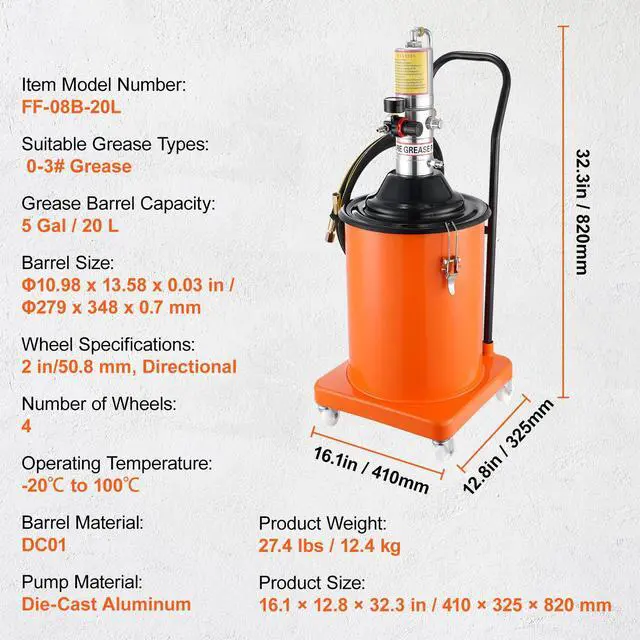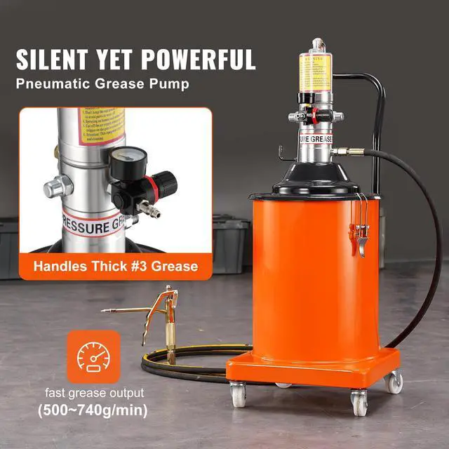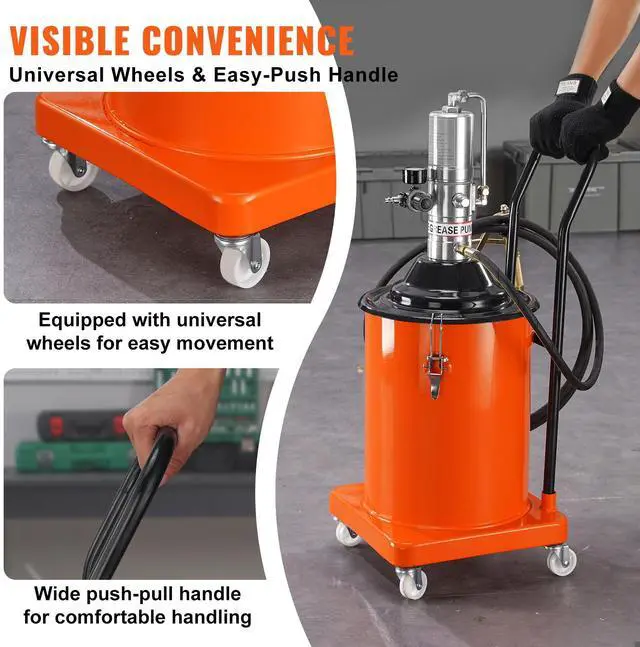 VEVOR Grease Pump, 5 Gallon 20L, Air Operated Grease Pump with 13 ft High Pressure Hose and Grease Gun, Pneumatic Grease Bucket Pump with Wheels, Portable Lubrication Grease Pump 50:1 Pressure Ratio, Lubrication Just Got Easier, High-Quality Grease Pump, Versatile and User-Friendly, Crafted with Care, Ready for Big Tasks, Precision Pressure Valve, Wheel