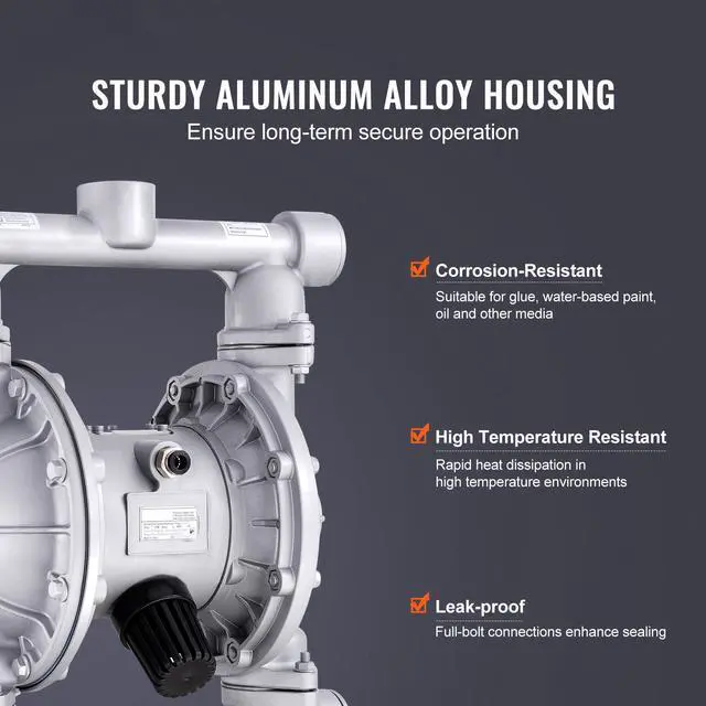 VEVOR Air Operated Double Diaphragm Pump, 44GPM, Max 115PSI Air Waste Oil Pneumatic Transfer Pump with 2 Extra Diaphragms, 1-1/2 inch Inlet & Outlet Aluminum Alloy Diaphragm Pump for Diesel Grease Oil, Mighty Performance, Sturdy & Durable, Unparalleled Sealing Efficiency, Extra Diaphragms, Wide Application, Professional Design, Max.