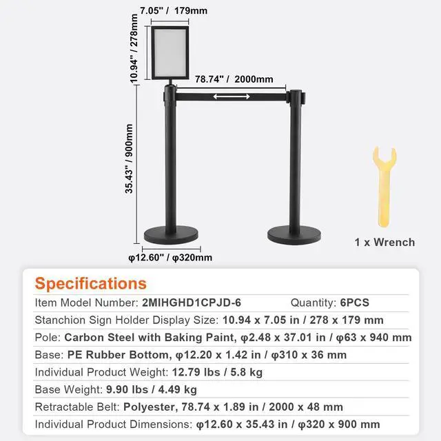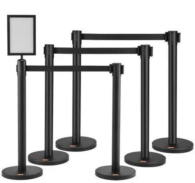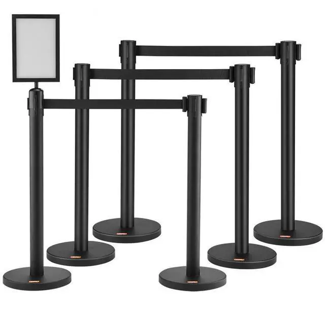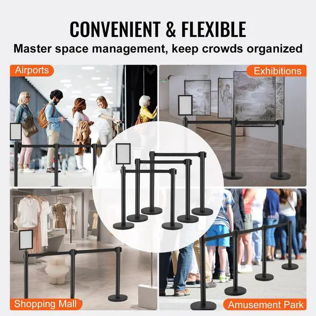 VEVOR Crowd Control Stanchions, 6-Pack Crowd Control Barriers, Carbon Steel Baking Painted Stanchion Queue Post with Sign Holder & 3PCS 6.5FT Retractable Belt, Belt Barrier Line Divider, Easy Assembly, Enhanced Stability with Concrete-Filled Bases, Superior Crowd Control, 4-Way Adapter, Easy Installation, Wide Applications, Convenience and Efficiency Combined, Individual