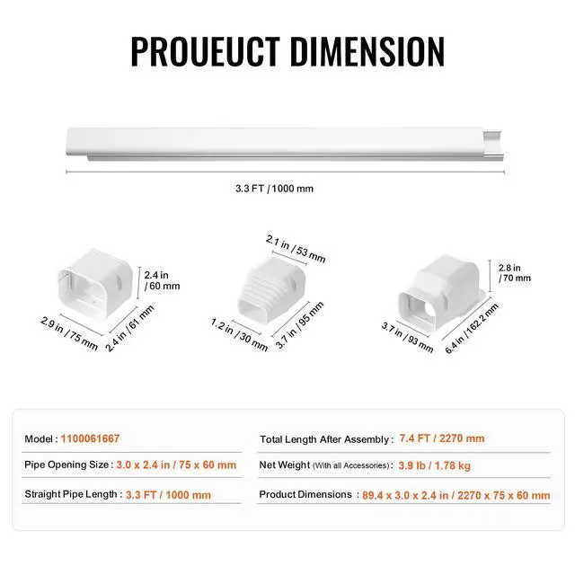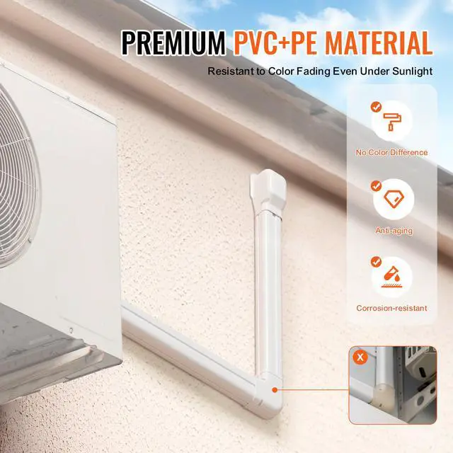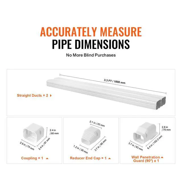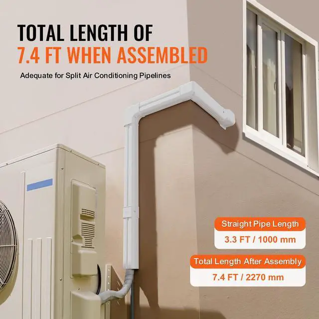 VEVOR Mini Split Line Set Cover 3-inch W 7.4F t L, PVC Decorative Pipe Line Cover For Air Conditioner with 2 Straight Ducts & Full Components Easy to Install, Paintable for Heat Pumps, White, Complete Accessory Set, Universal Straight Pipes, Quick Installation, Paintable Material, Versatile Application, High Quality, Straight