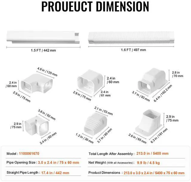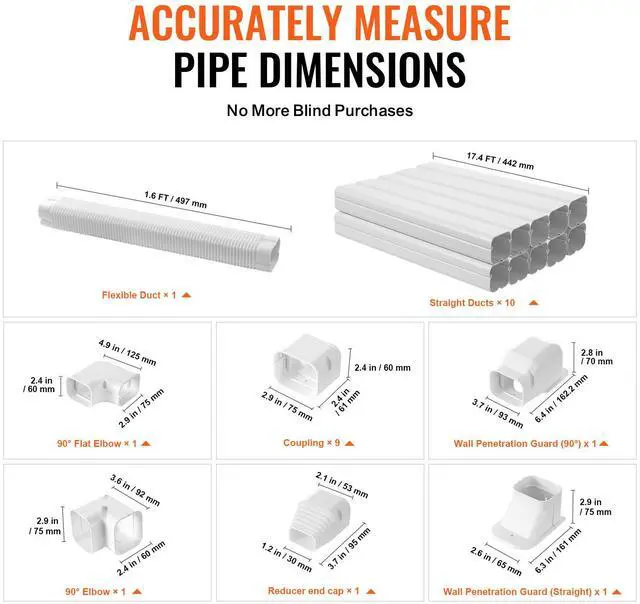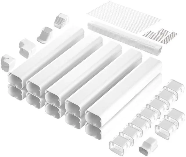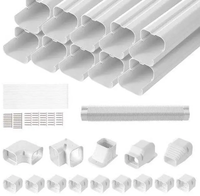 VEVOR Mini Split Line Set Cover 3-inch W 17.7F t L, PVC Decorative Pipe Line Cover For Air Conditioner with 10 Straight Ducts & Full Components Easy to Install, Paintable for Heat Pumps, White, Complete Accessory Set, Universal Straight Pipes, Quick Installation, Paintable Material, Versatile Application, High Quality, Straight