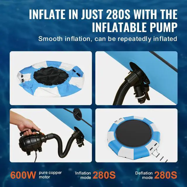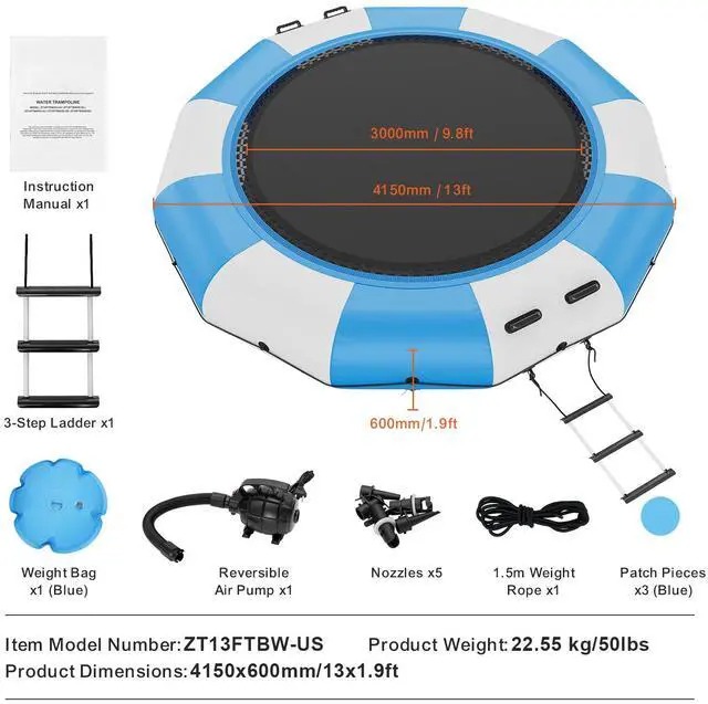 VEVOR Inflatable Water Bouncer, 13ft Recreational Water Trampoline, Portable Bounce Swim Platform with 3-Step Ladder & Electric Air Pump, Kids Adults Floating Rebounder for Pool, Lake, Water Sports, Multiple Sizes and Colors Available, Premium Materials, Quick Inflation, User-friendly Design, Versatile Application, Complete Accessories, Item