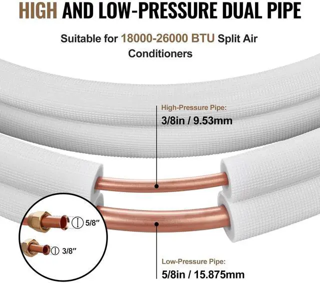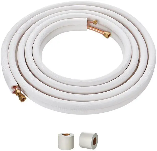 VEVOR 25FT Mini Split Line Set, 3/8" & 5/8" O. D Copper Pipes Tubing and Triple-Layer Insulation, for Mini Split Air Conditioning Refrigerant or Heating Pump Equipment & HVAC with Wrapping Strips., High Flexibility, One Pipe For Multiple Uses, Stringent Material Quality Control, Unquestionable Thermal Insulation, Simple Installation, Long Lifespan, Overall Dimensions (L x W x
