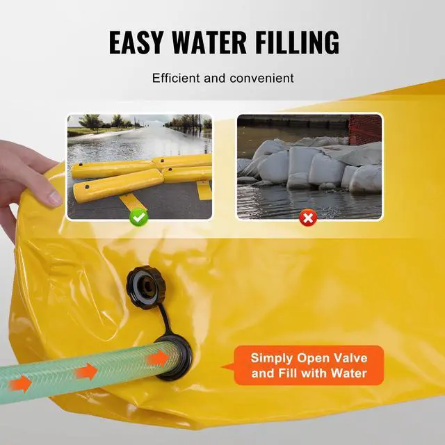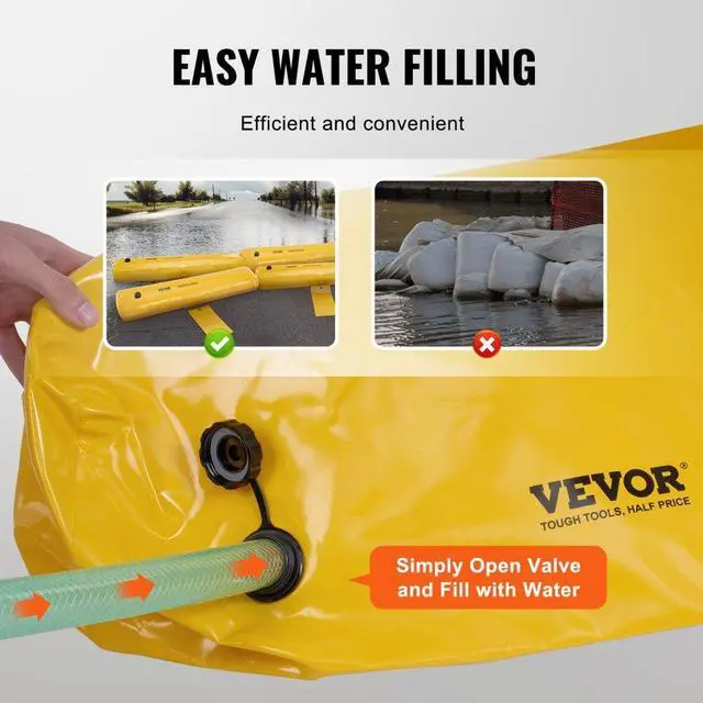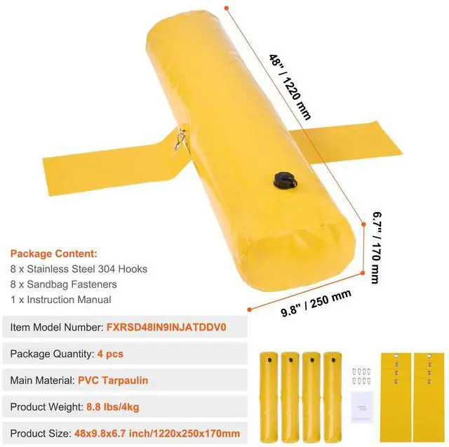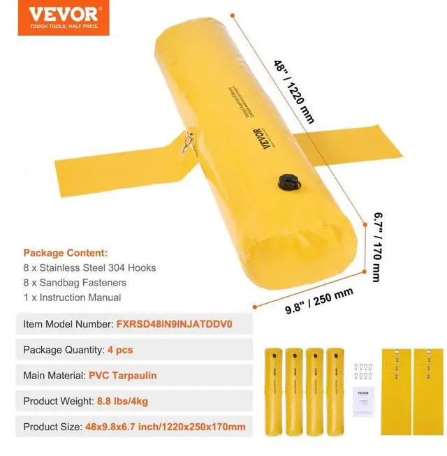 VEVOR Flood Barriers, Sandbag Alternative Flood Bags 4 Pack, Flood Barrier for Home, Water Barriers for Flooding, Doorway, Driveway (4FTx6in), Easy to Use, Sturdy and Durable, Portable and Easy to Store, Versatile Application, 8 Fixing Clips, 4pcs 48x 9.8 x 6.7 '' Flood Barrier Bags, Item