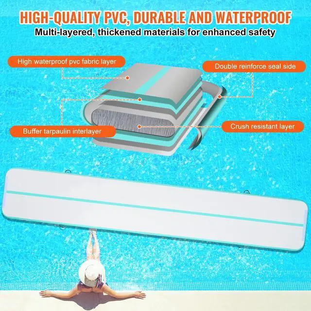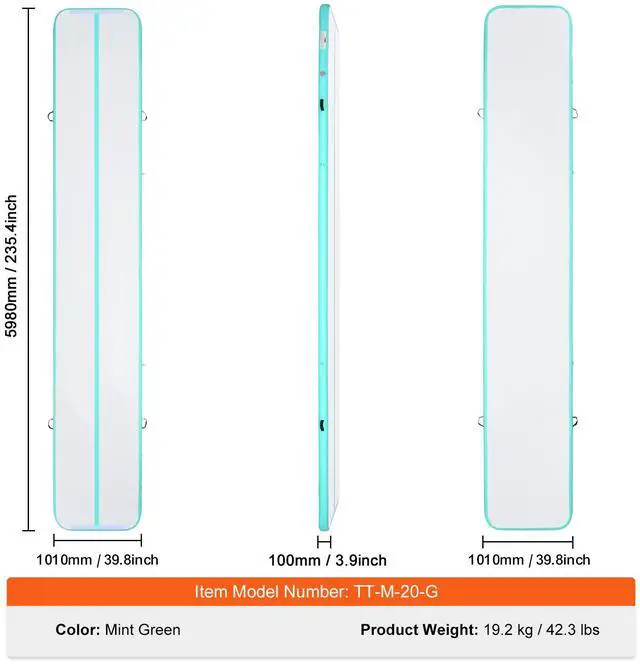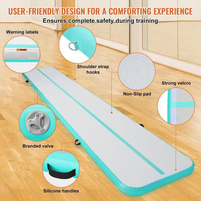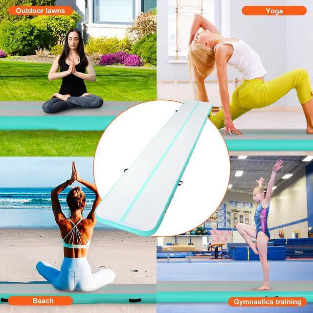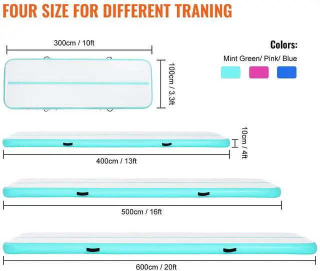 VEVOR Gymnastics Air Mat, 4 inch Thickness Inflatable Gymnastics Tumbling Mat, Tumble Track with Electric Pump, Training Mats for Home Use/Gym/Yoga/Cheerleading/Beach/Park/Water, 20 ft, Mint Green, High-Quality Inflatable Airtrack, Easy to Fold, Simple to Inflate, Exquisite Workmanship, Variety of Colors and Sizes, Versatile Applications, A Considerate Repair Kit, Color: Green, Item