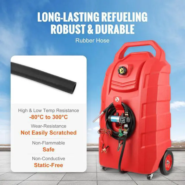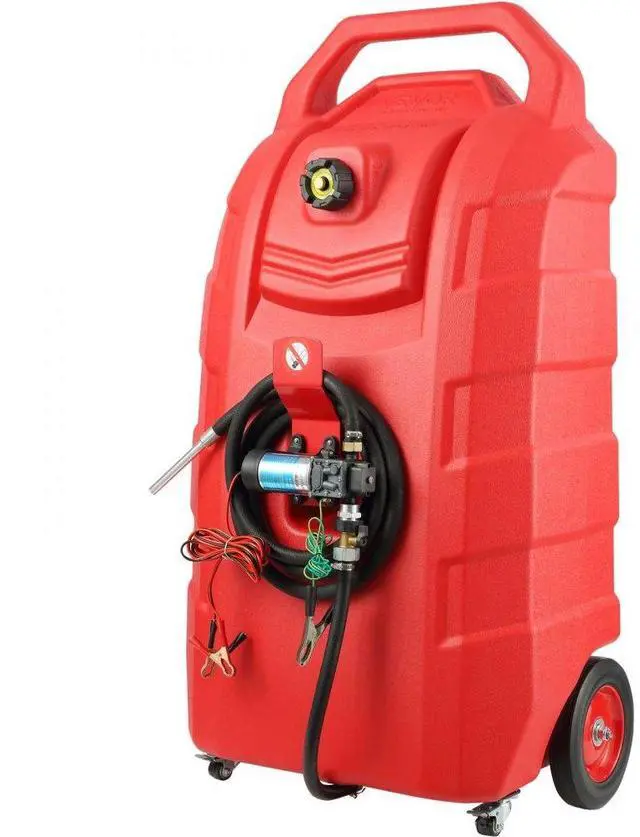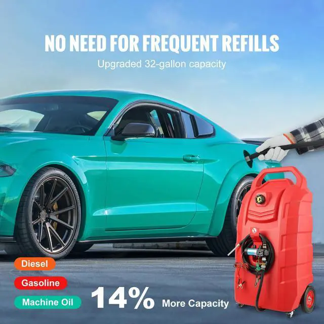 VEVOR Fuel Caddy, 32 Gallon, Portable Fuel Storage Tank On-Wheels, with 12V DC Transfer Pump, Gasoline Diesel Fuel Container with 8.2 ft Hose, Flow Rate 7L/min, for Trucks, Boats, Lawn Mowers, 32 Gallon Fuel Container, Diesel DC Pump, Easily Portable, Fast & Efficient Filling, Sturdy & Durable Material, Fill Up Anywhere, Max.