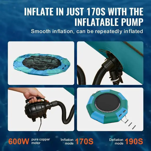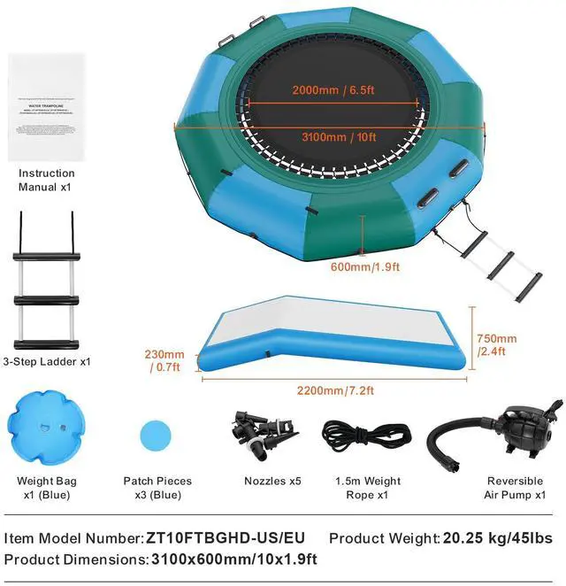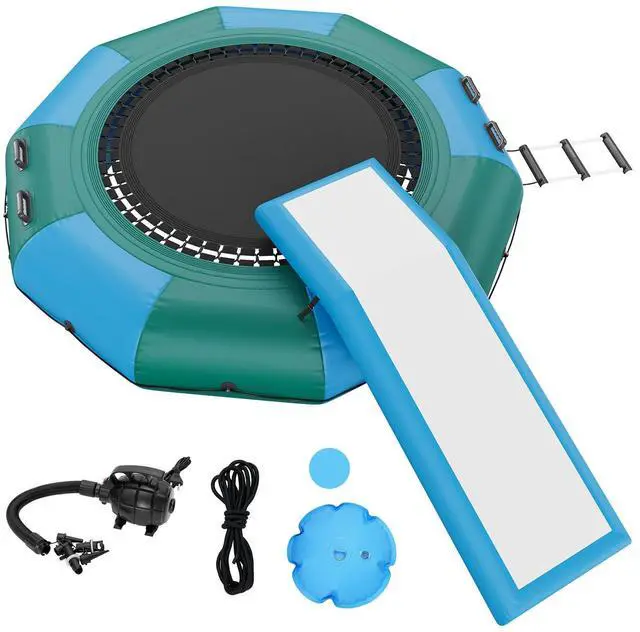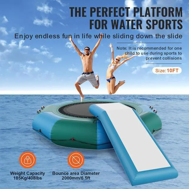 VEVOR Inflatable Water Bouncer, 10ft Recreational Water Trampoline, Portable Bounce Swim Platform with Slide, 3-Step Ladder & Electric Air Pump, Kid Adult Floating Rebounder for Pool Lake Water Sports, Two Color Options, Premium Materials, Quick Inflation, User-friendly Design, Versatile Application, Complete Accessories, Item
