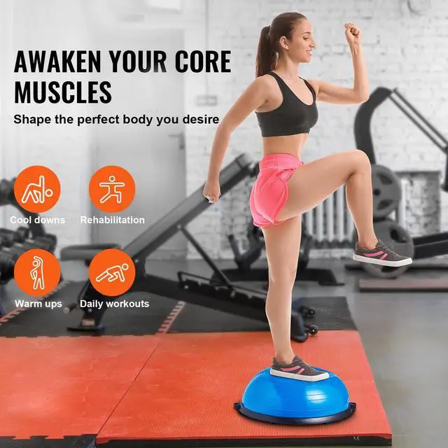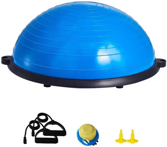 VEVOR Half Exercise Ball Trainer, 23 inch Balance Ball Trainer, 660lbs Capacity Stability Ball, Yoga Ball with Resistance Bands & Foot Pump, Strength Fitness Ball for Home Gym, Full Body Workout, Blue, Infinite Exercise Options, Various Training Modes, Durable and Stable, Easy to Inflate, Wide Application, Multiple Color and Size Options, Maximum