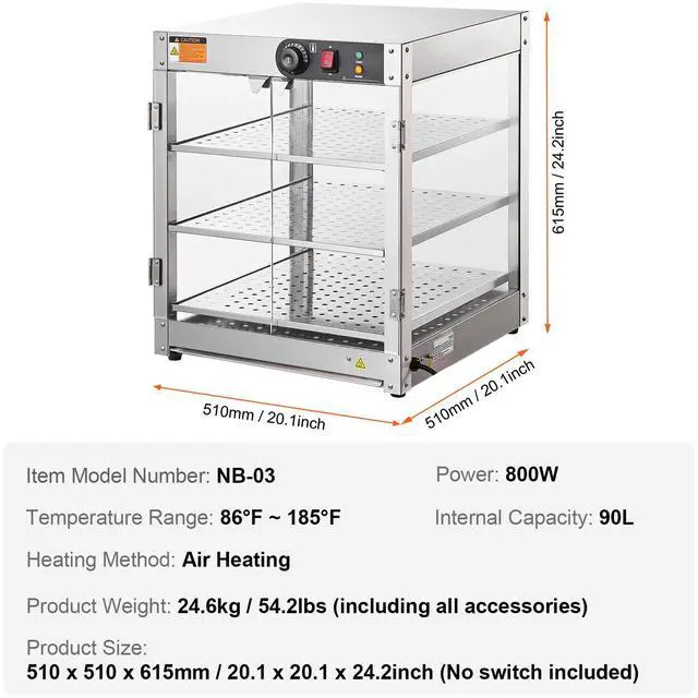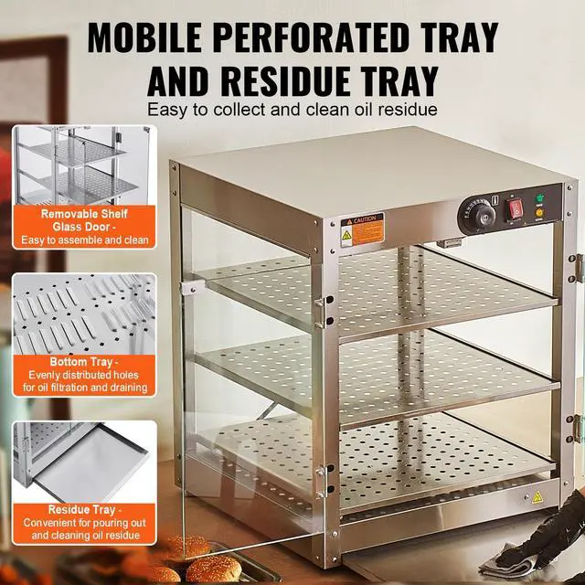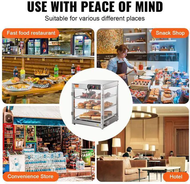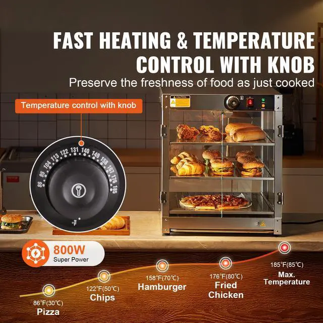 VEVOR 3-Tier Commercial Food Warmer Display Countertop Pizza Cabinet with Light, Temperature Control, 3-Tier Large Space, Easy to Clean, Premium Material, Even Heating, Warm Reminder, Internal