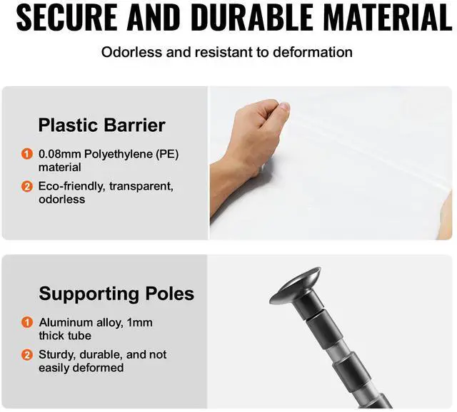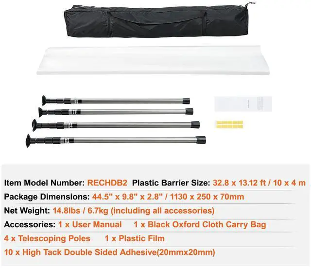 VEVOR Dust Barrier Poles 12 Ft with 4 Telescoping Poles Dust Barrier System, Dust-Proof Magic, Reinforced Design, Eco-Warrior Toughness, Adjustable Heights, Easy Installation, Portable and Easy Storage,