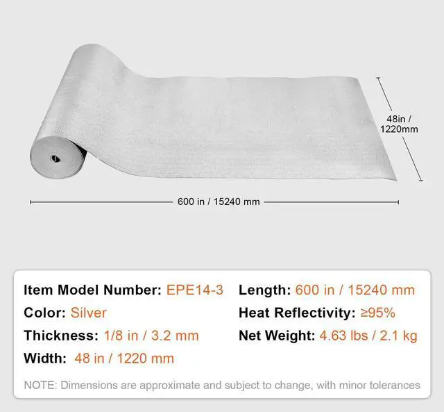 VEVOR Double Reflective Insulation Roll Foam Core Radiant Barrier 600 in x 48 in x 1/8 in, Superior Thermal Insulation, Exceptional Durability, Easy Installation Tips, Versatile Application, Multiple Size Options, High-Quality