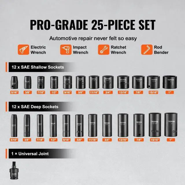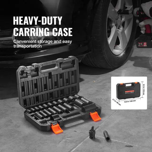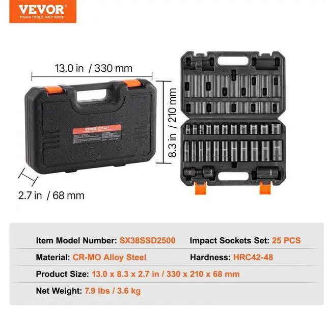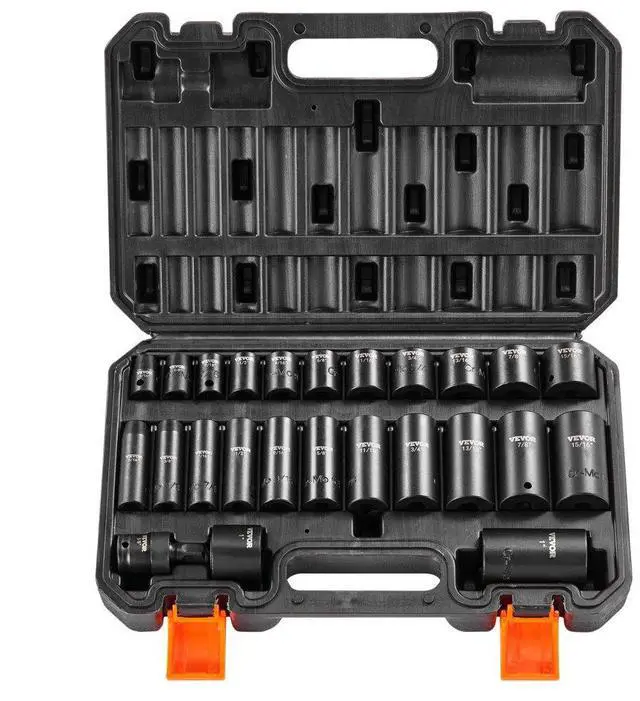 • VEVOR Impact Sockets Set 25pcs 6-Point 3/8in Drive Bit Ratchet Tool Kit Case