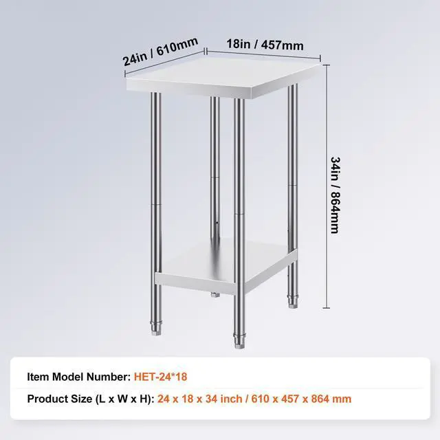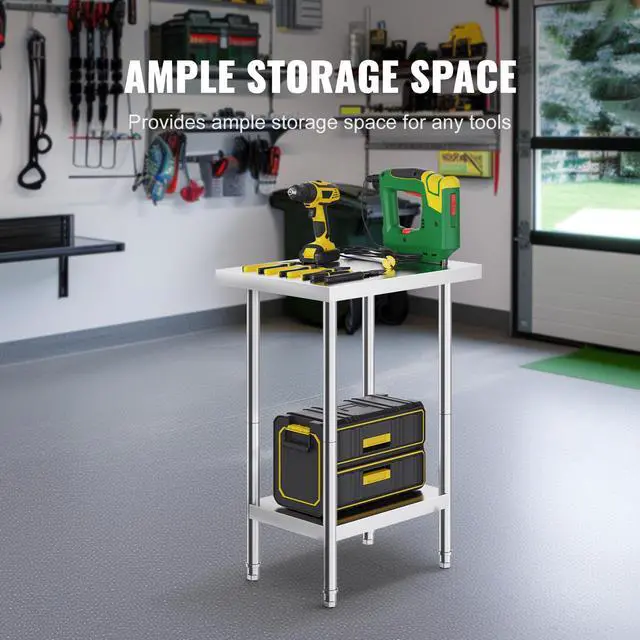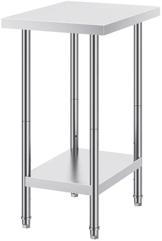 VEVOR Stainless Steel Prep Table, 24 x 18 x 34 Inch, Heavy Duty Metal Worktable with 3 Adjustable Height Levels, Commercial Workstation for Kitchen Garage Restaurant Backyard, Stylish Work Table, Multiple Styles Available, Durable, Safe, and Stable, Flexible Setup, Easy to Install, Versatile Applications,