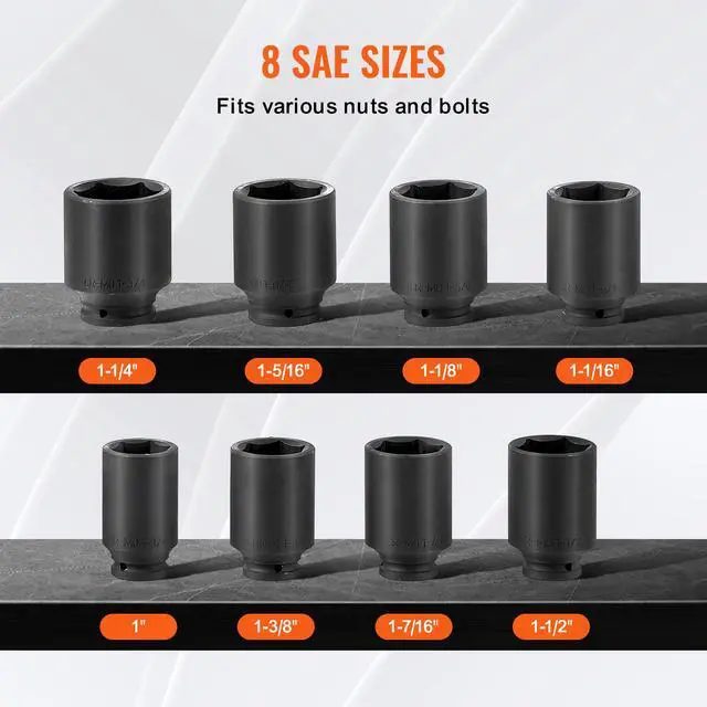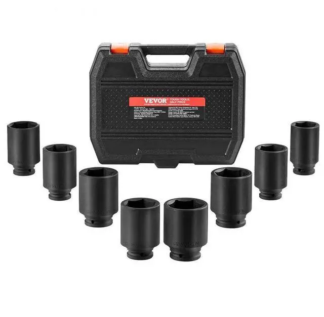 VEVOR Axle Nut Impact Socket Set 3/4" Deep Drive 6-Point 8PCS SAE Spindle Socket, 3/4 Inch Axle Nut Socket Set, 8-Piece Set, Easy Size Identification, Portable Storage Case, Suitable for Industrial and Home Repairs, 6-Point Socket Design,