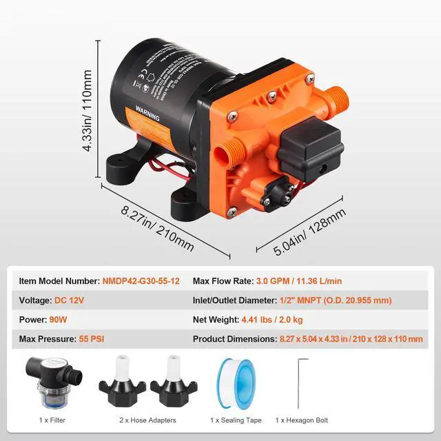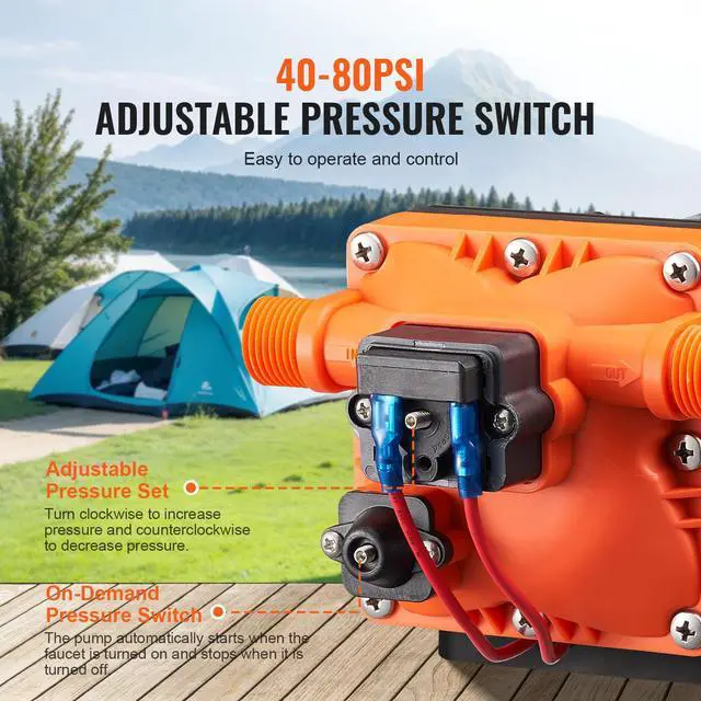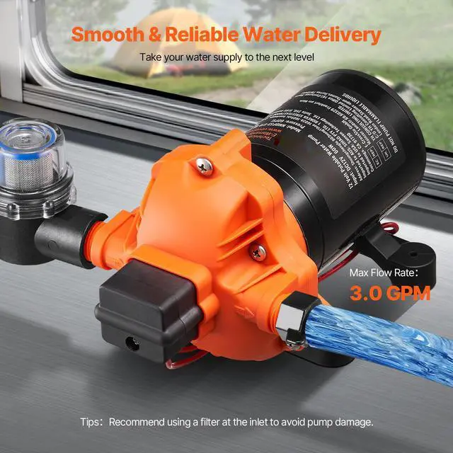 VEVOR 12V Diaphragm Pump 3GPM 11.36 L/min 4-Chamber Water Pump Pressure Switch, 12V Potable Water Pump, Adjustable Water Pressure, Low Noise, Standard Size, Stable and Efficient Water Supply, Secure and Reliable, Voltage: DC 12V, Item