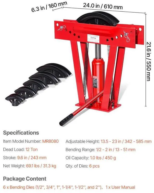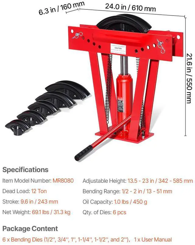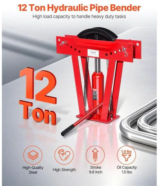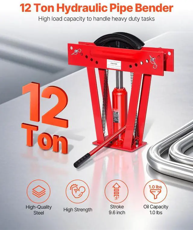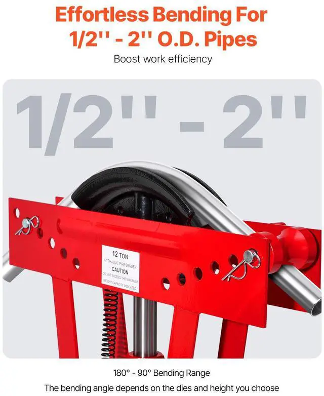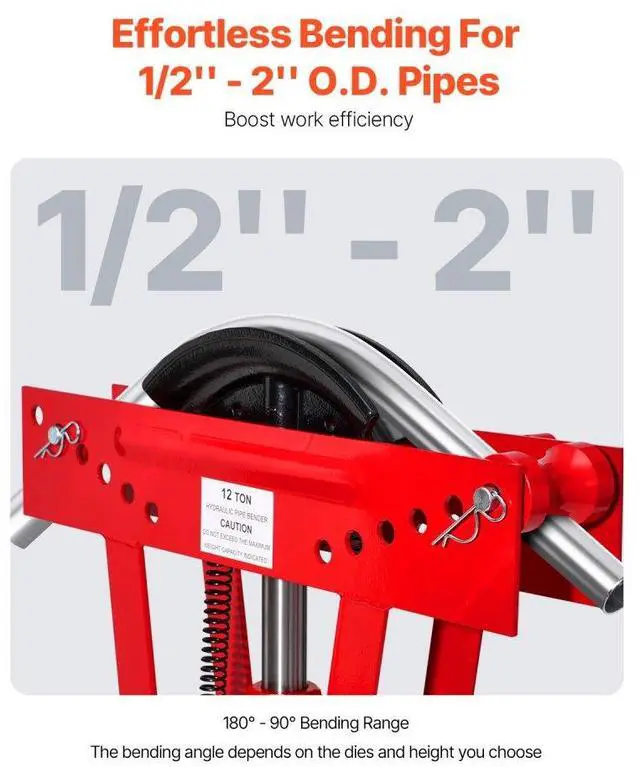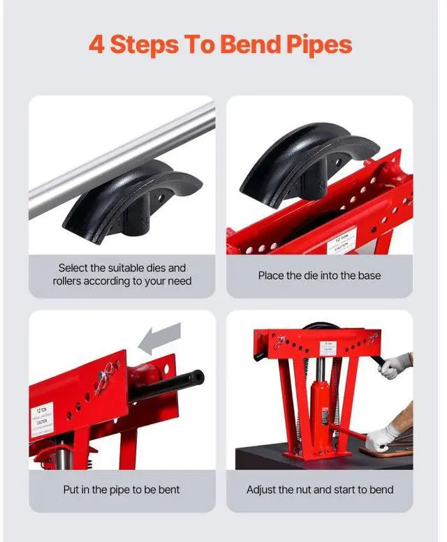 Hydraulic Pipe Bender 12 Ton Manual Pipe Bending Tool with 6 Dies, Efficient Heavy-Duty Bending, Multiple Die Options, 180°-90° Bending Range, Stable and Durable, Wide Application, Unique Gear