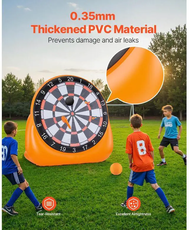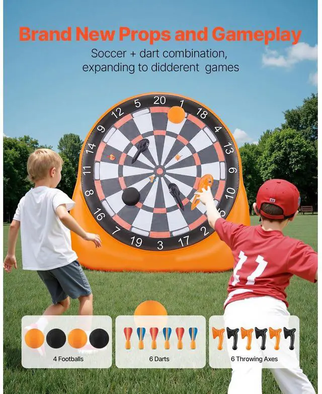 Inflatable Soccer Dart Board over 6 ft with 4 Kick Ball 6 Darts 6 Axe Pump, 2-In-1 Inflatable Hole, Thickened PVC Material, Nylon Buckle Target Surface, Comes with a Storage Bag, Excellent Product Design, Large-Size Design, Inflation