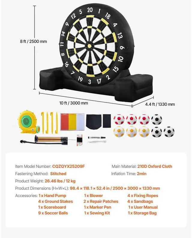 Inflatable Soccer Dart Board over 8 ft High with 9 Kick Balls & Air Pump, 370W Blower, 210D Oxford Cloth, Sewing Target Surface, Comes with a Storage Bag, Excellent Product Design, Large-Size Design, Inflation