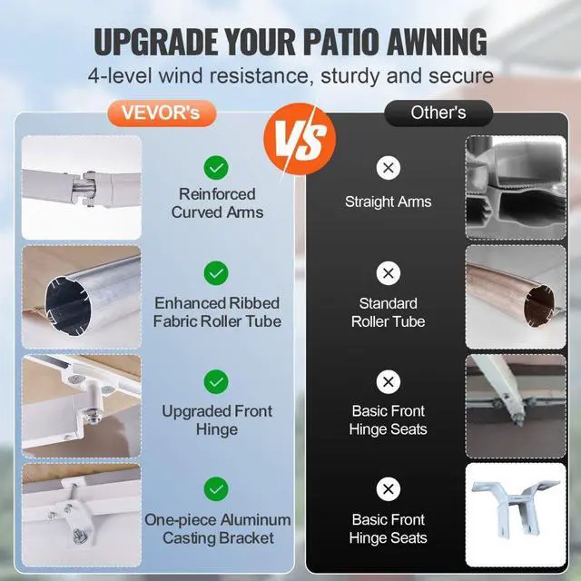 Crank Handle Size: 47.2 inch,Item Model Number: RA250200,Wind Resistance: Level 4,Product Weight: 37.9 lbs/17.2 kg,Main Material: Steel + Aluminum + 280G Double-Sided PU Coating,Sun Protection Level: UV80+,Product Size: 8 x 7 ft