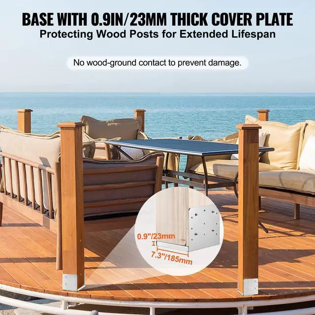 VEVOR 8"x 8" Post Base, 1Pcs Stainless Steel Adjustable Post Anchor Bracket(Internal 7.8 x 7.3"), Adjustable Post Base for Pavilion Deck Porch Handrail Railing Support Decorative Anchor Plate