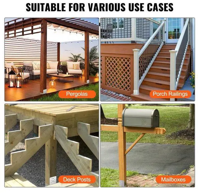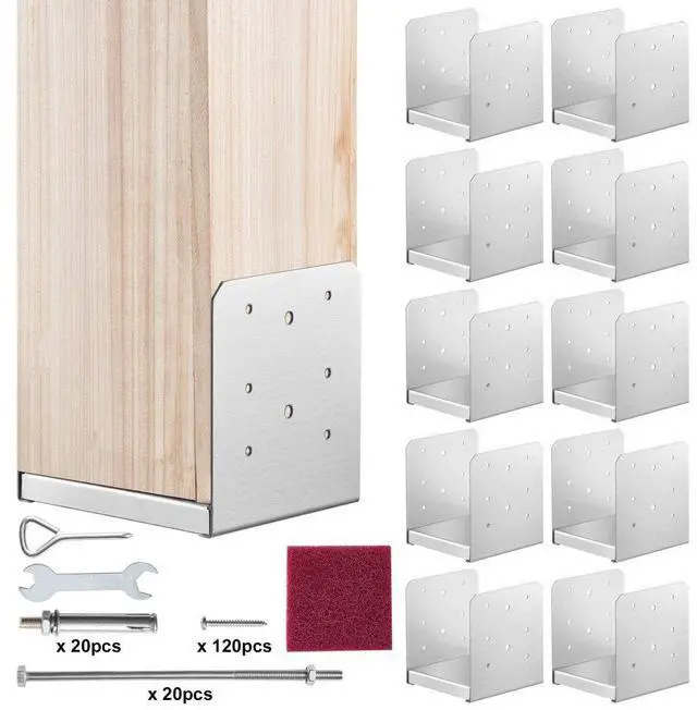 VEVOR 6"x 6" Post Base, 10Pcs Stainless Steel Adjustable Post Anchor Bracket(Internal 5.9 x 5.5"), Adjustable Post Base for Pavilion Deck Porch Handrail Railing Support Decorative Anchor Plate