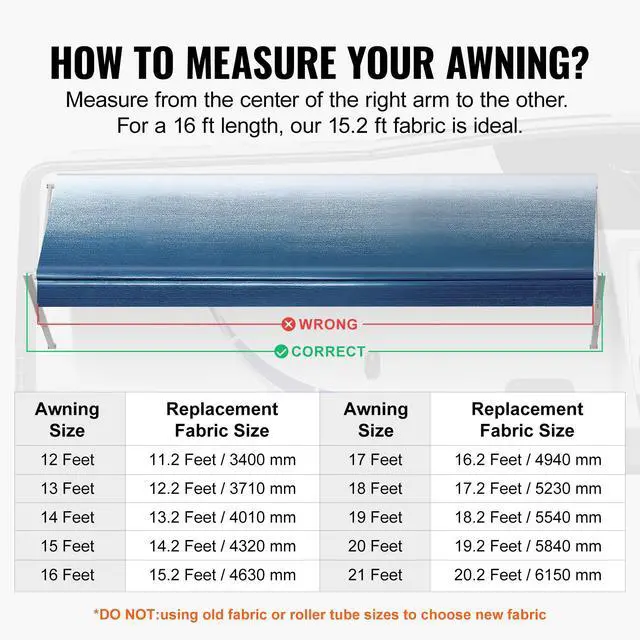 VEVOR RV Awning Fabric Replacement, 15'2" Fabric Length for 16' Awning, Heavy Duty 3-Ply 16oz PVC Camper Awning Fabric, Waterproof & UV Protection Outdoor Canopy for RV, Trailer, Motorhome, Blue Fade