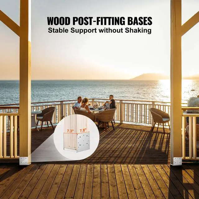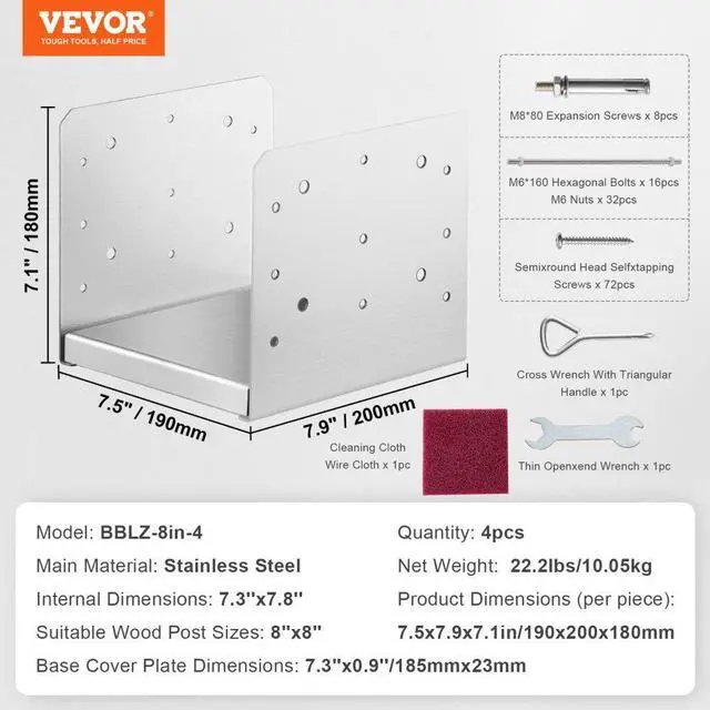VEVOR 8"x 8" Post Base, 4Pcs Stainless Steel Adjustable Post Anchor Bracket(Internal 7.8 x 7.3"), Adjustable Post Base for Pavilion Deck Porch Handrail Railing Support Decorative Anchor Plate