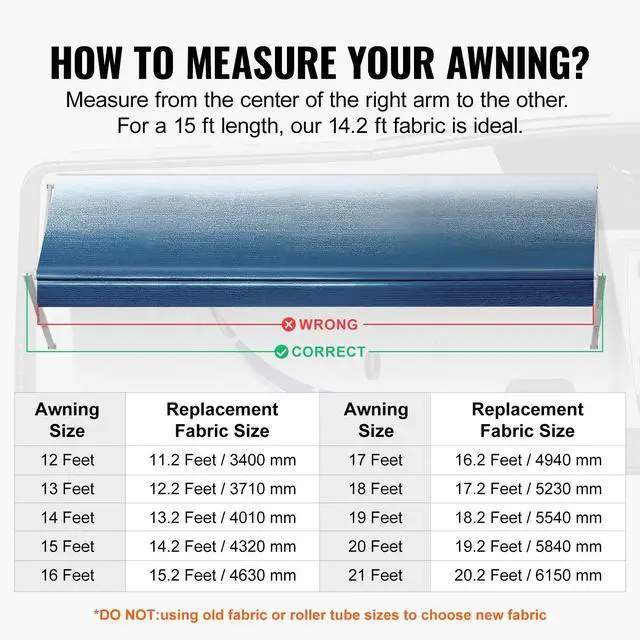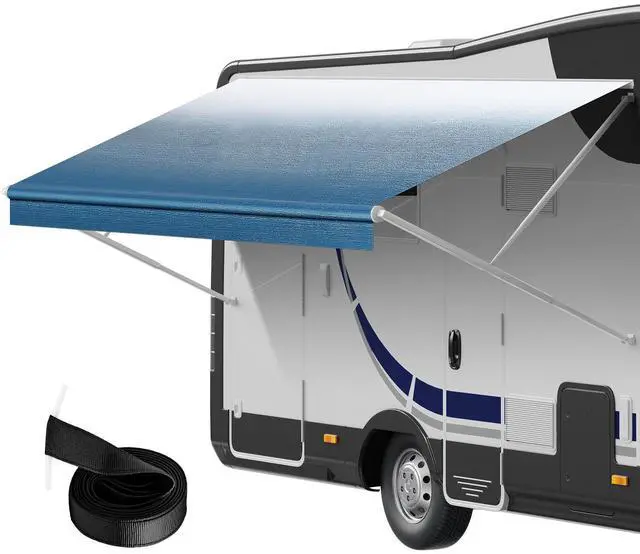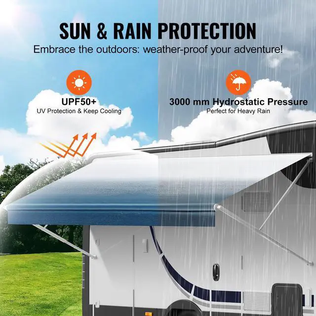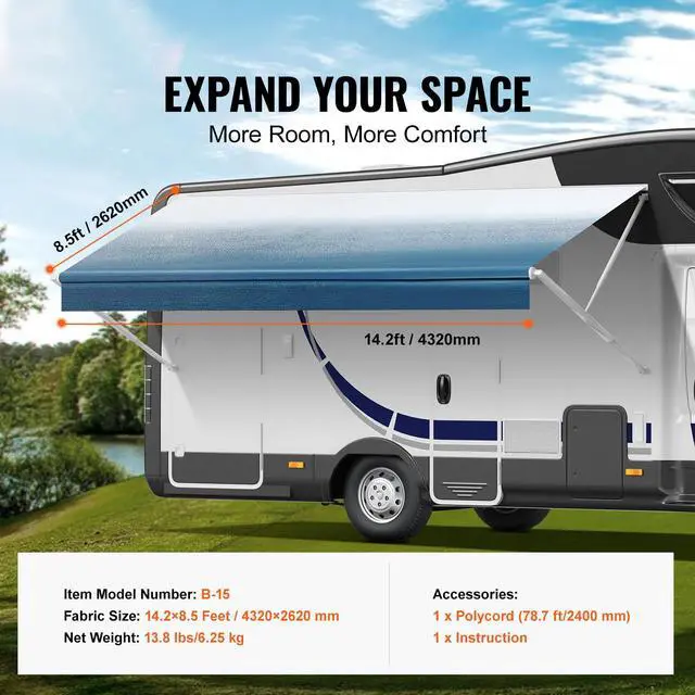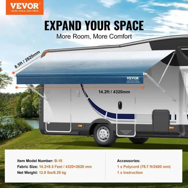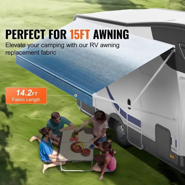 VEVOR RV Awning Fabric Replacement, 14'2" Fabric Length for 15' Awning, Heavy Duty 3-Ply 16oz PVC Camper Awning Fabric, Waterproof & UV Protection Outdoor Canopy for RV, Trailer, Motorhome, Blue Fade