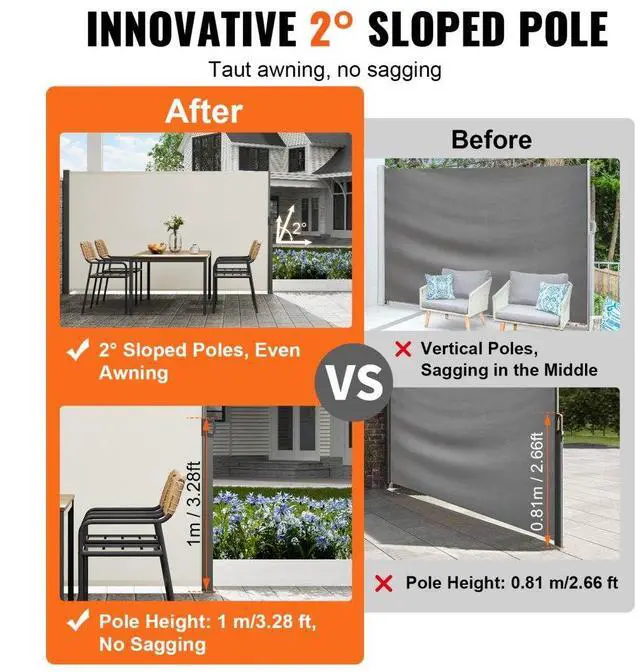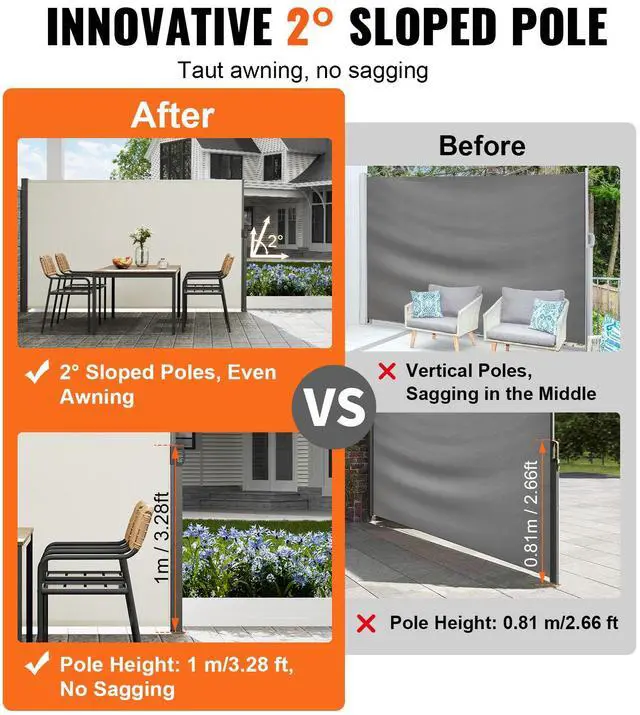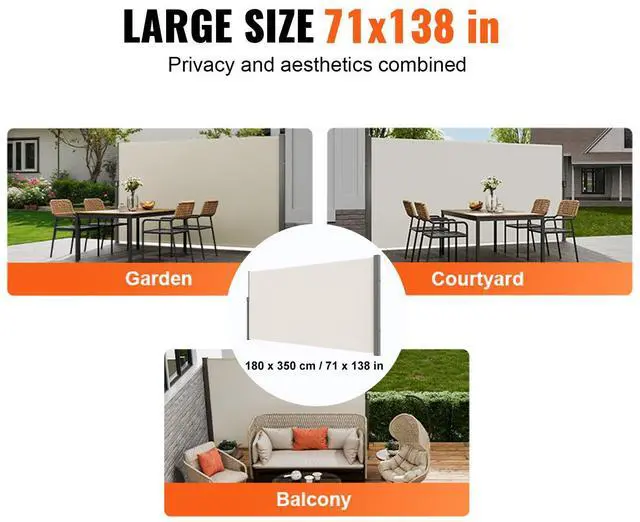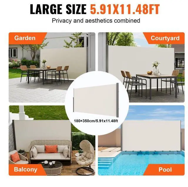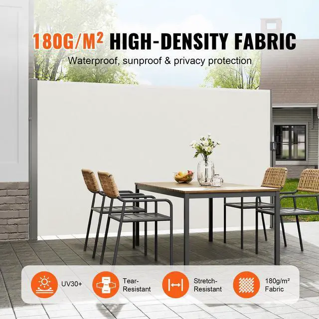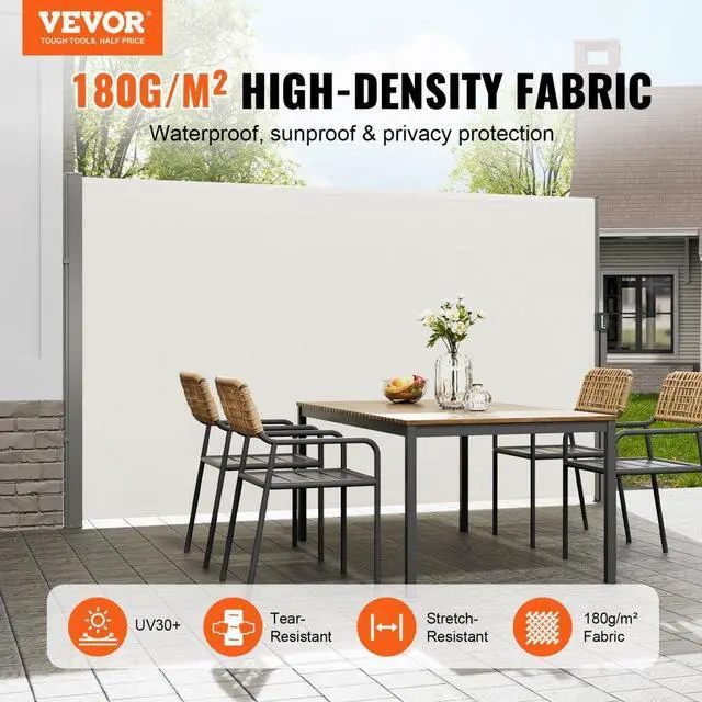 VEVOR Retractable Side Awning, 71''x 138'' Outdoor Privacy Screen, 180g Polyester Water-proof Retractable Patio Screen, UV 30+ Room Divider Wind Screen for Patio, Backyard, Balcony, Beige