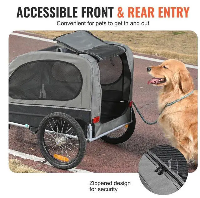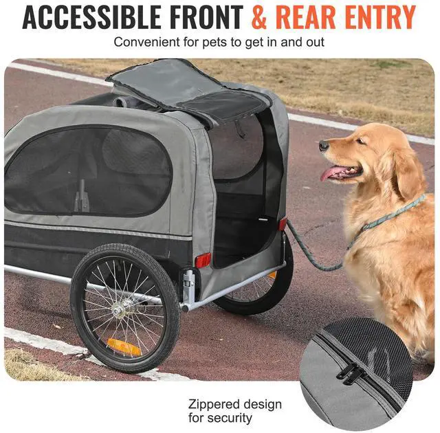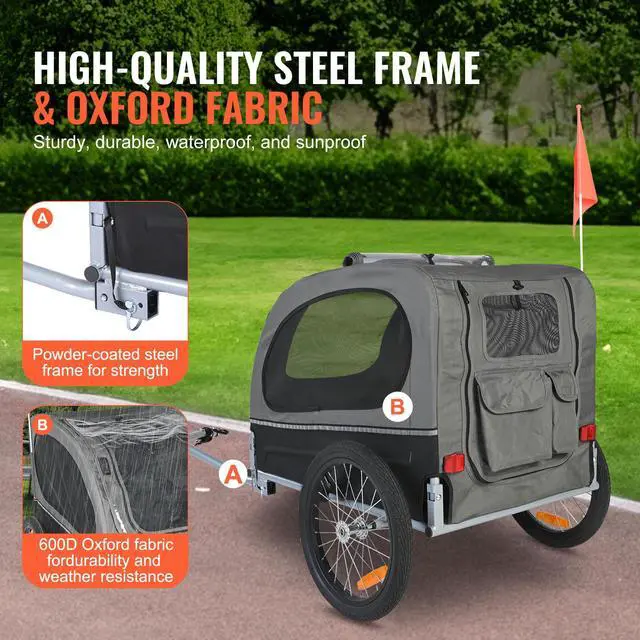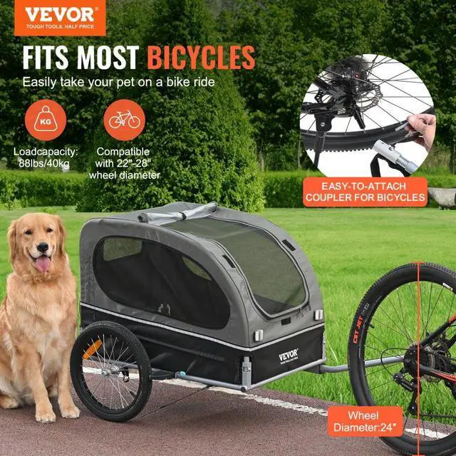 VEVOR Dog Bike Trailer, Supports up to 88 lbs, Pet Cart Bicycle Carrier, Easy Folding Frame with Quick Release Wheels, Universal Bicycle Coupler, Reflectors, Flag, Collapsible to Store, Black/Gray