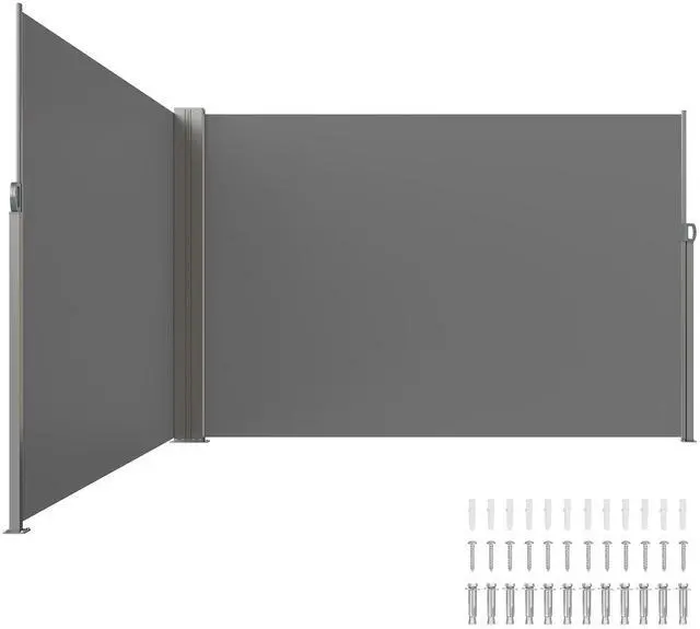 VEVOR Retractable Side Awning, 79''x 236'' Outdoor Privacy Screen, 180g Polyester Water-proof Retractable Patio Screen, UV 30+ Room Divider Wind Screen for Patio, Backyard, Balcony, Gray