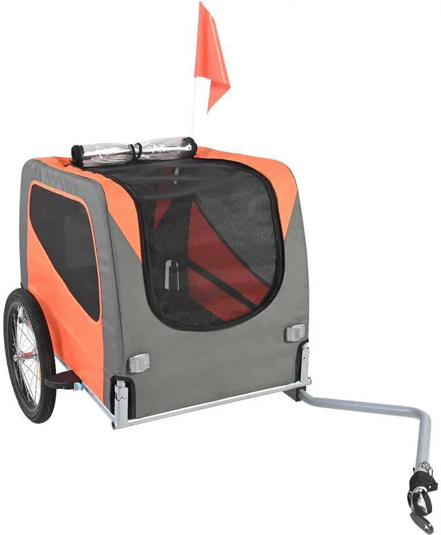 VEVOR Dog Bike Trailer, Supports up to 66 lbs, Pet Cart Bicycle Carrier, Easy Folding Frame with Quick Release Wheels, Universal Bicycle Coupler, Reflectors, Flag, Collapsible to Store, Orange/Gray